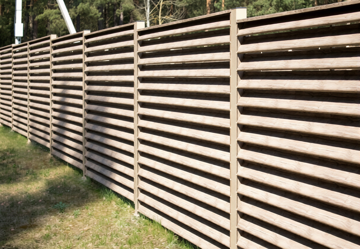 Деревянный забор жалюзи под уклоном