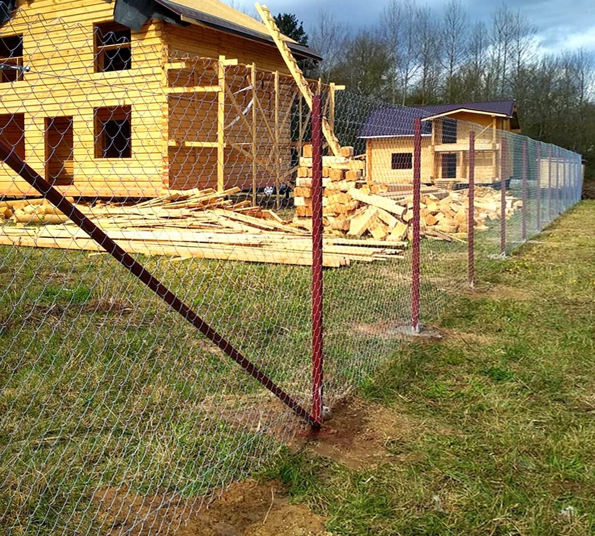 Ограждение территории частного дома сеткой рабица