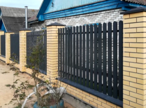 Главная » Товары » Каталог » Забор из штакетника со столбами из кирпича Забор из штакетника со столбами из кирпичаОт 6 820 ₽ - Количество товара Забор из штакетника со столбами из кирпича + В корзину Быстрый заказ Категории: Евроштакетник, Каталог Описание Описание Забор из штакетника со столбами из кирпича Похожие товары Забор из профнастила с кирпичными колоннами От 5 000 ₽ В корзину Забор из сетки-рабицы От 1 300 ₽ В корзину Сварной забор черного цвета с калиткой От 2 030 ₽ В корзину Стальной забор-расческа От 10 900 ₽ В корзину